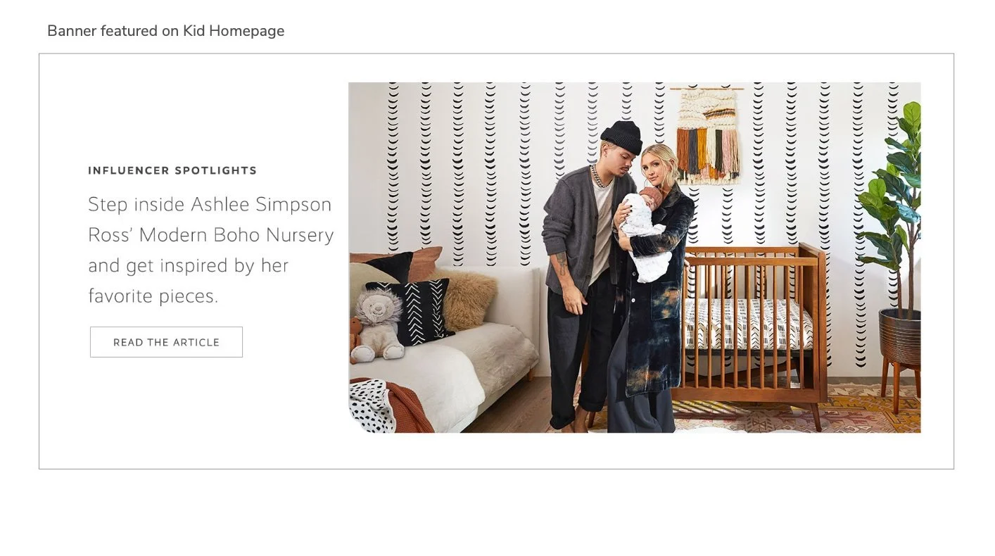 Homepage banner driving users to a makeover blog featuring Ashlee Simpson’s nursery inspiration for her new baby’s room. Other assets included an article, a video, social, and emails.